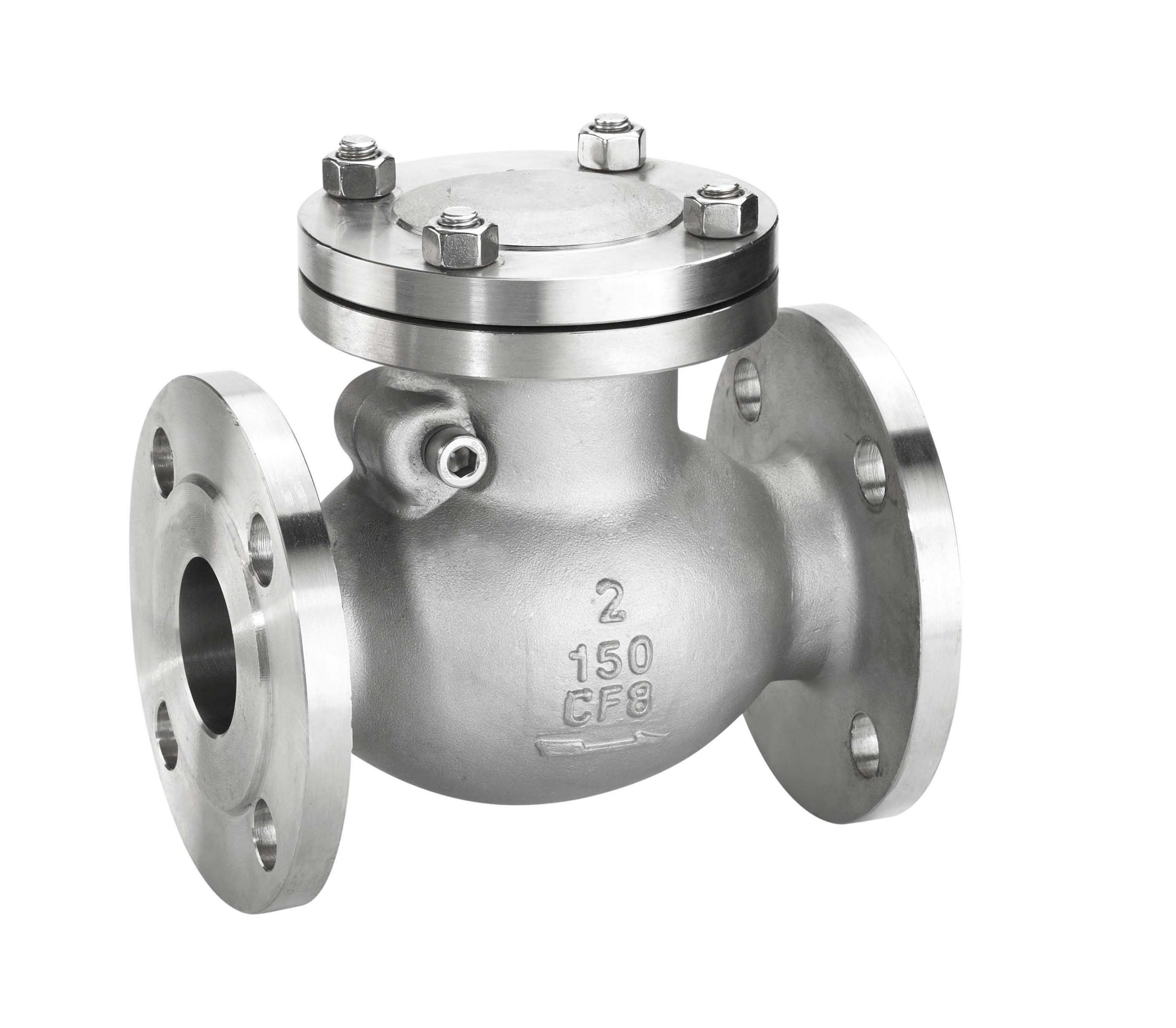 止回閥能夠有效控制管路中介質(zhì)的流向,水泵則是抽水、泵水的裝置,在管路中都必不可少。當(dāng)水泵負(fù)壓安裝時,水泵高于介質(zhì)液面,此時法蘭止回閥宜做底閥安裝于止回閥的抽水端,而當(dāng)水泵正壓安裝時,水泵高于介質(zhì)液面,法蘭止回閥應(yīng)當(dāng)安裝在水泵的泵出口端,能夠有效控制整個母管制水泵系統(tǒng),提高防介質(zhì)倒流效果。