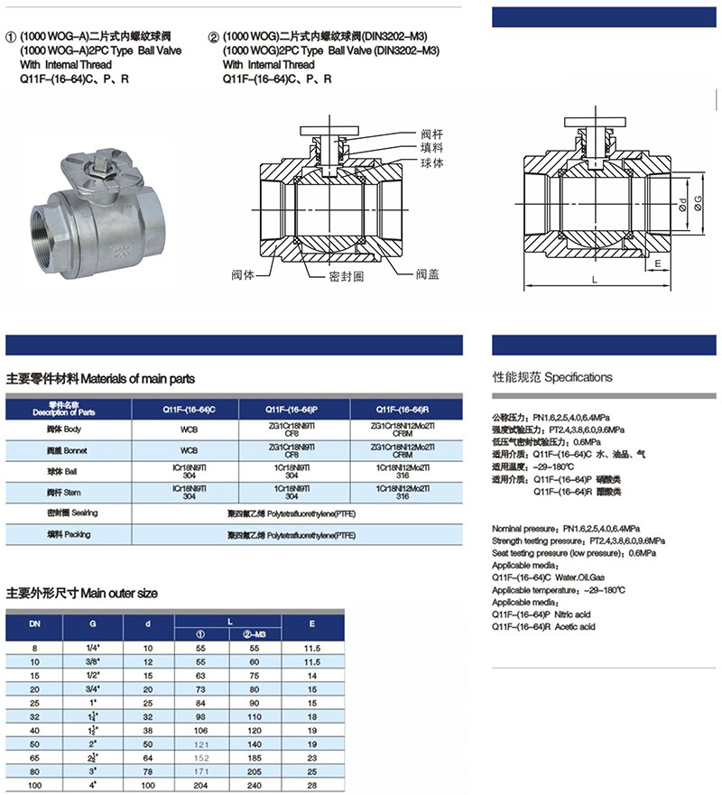 公稱尺寸:DN15-DN100,? 1/4~4”